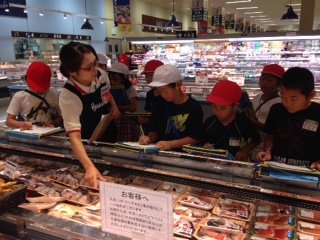 今週水曜日の午前中,3年生は社会科の学習でスーパーマーケットの見学に出かけてきました。お店の人から,いろいろな工夫を聞きました。子どもたちは,熱心にお店の人の話を聞き,メモをとりました。お店の中だけでなく,お店の裏側も見せていただきました。今後,見学で見てきたことを授業でまとめていきます。
