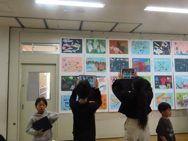 本日、展覧会が開催されました。多くの保護者や地域の皆さんからお越しいただき、子どもたちの力作をご覧いただきました。また、体育館では万代太鼓『鼓草』と『華龍』の皆さんによる演奏も披露されました。こちらも多くの皆さんにご来場いただきました。