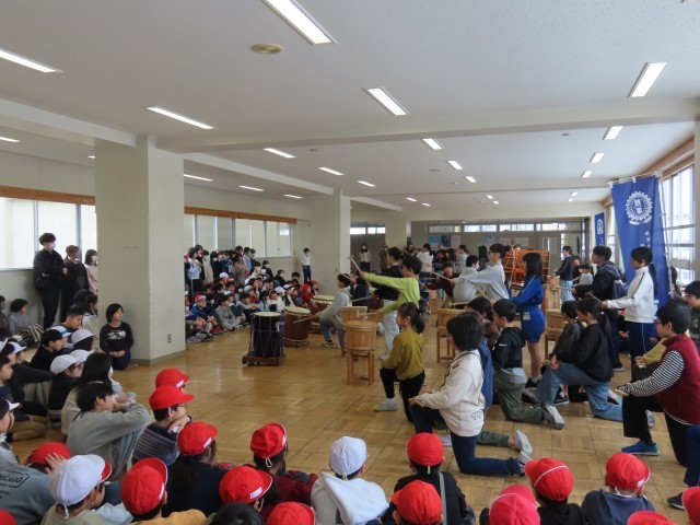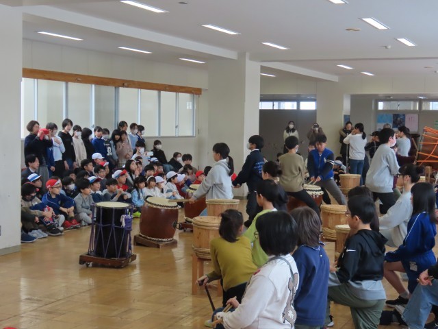 万代太鼓 鼓草のメンバーが校内で昼休み公演を開催しました。100人を超える観客が集まり、迫力のある演奏を楽しみました。次年度の新規メンバーも募集中ということで今後の活動も楽しみです。