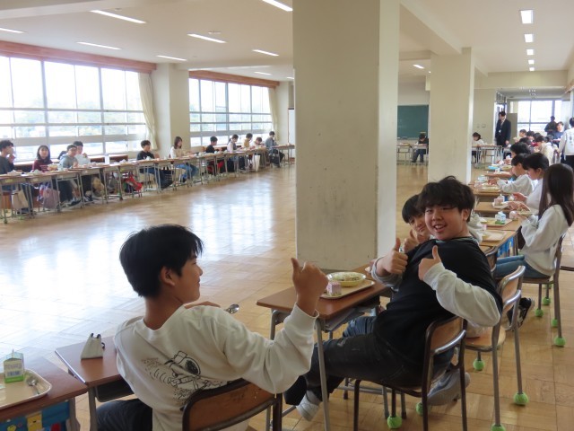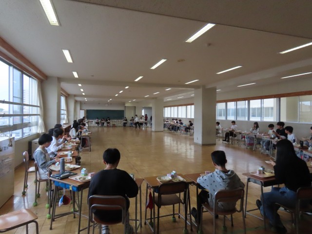 今日は今年度最後の給食でした。6年生にとっては、小学校で食べる給食も今日が最後。学年みんなで4階多目的ホールに集まり、輪になって最後の給食の時間を楽しんでいました。