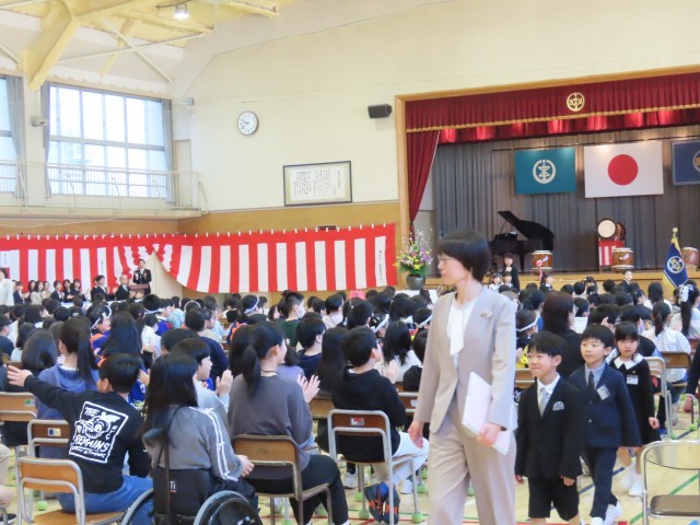 本日、入学式を行い、全校児童で新1年生を迎えました。