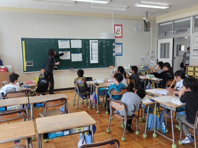 授業の始めは一人ひとり好きな一文字を挙げてもらい、その文字のページを辞典から検索するという内容でしたが、授業が終わる頃には様々な言葉が検索できるようになりました。子ども達の吸収力はすごいです。