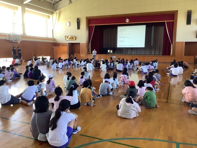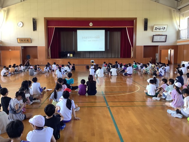 ひだまりウォークに向けて、全校のみんなで約束の確認を行いました。