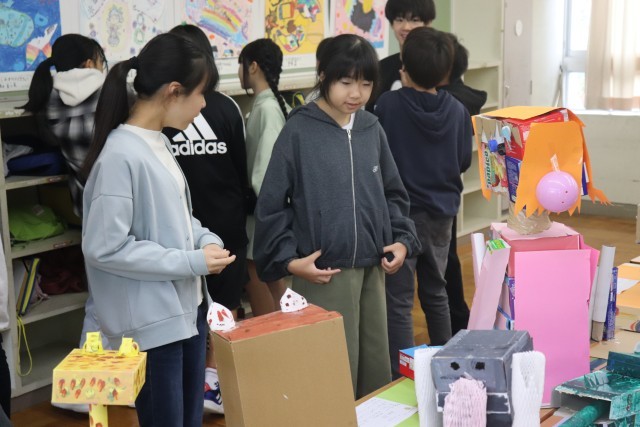 全校で絵画・工作の作品鑑賞をする時間がありました。
