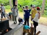 焼杉板を作るために、窯場で火を起こしました。 どの班も薪を組み合わせて上手に火を...