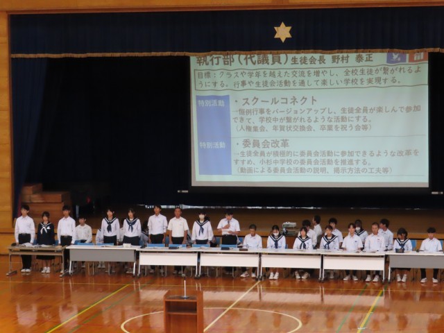 執行部や各委員長からの報告や説明を聞き、生徒全員で自分たちの生徒会活動を考えるよい時間となりました。