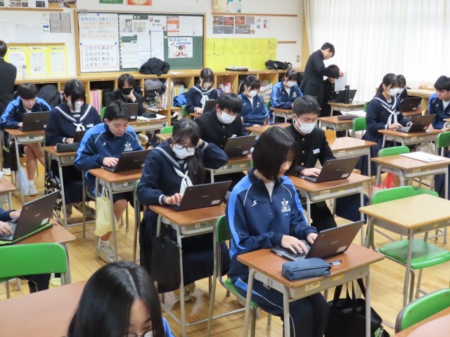 各学校の課題や特徴的な取組を知り、今後の利用の仕方について意識を高める時間となりました。集会後は各教室で振り返りを行いました。