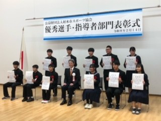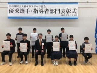 今年度、運動部で活躍した個人・団体に対する、射水市スポーツ協会の表彰式が市民交流プラザにて行われました。