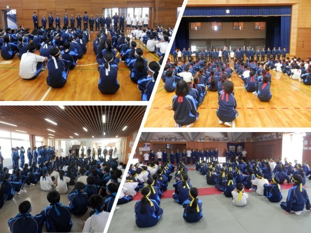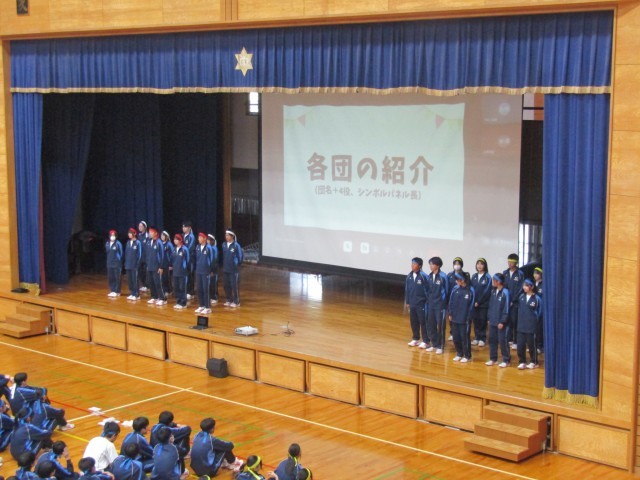生徒会から今年度の運動会のスローガンや種目・係について説明があり、各団のリーダーの紹介もありました。