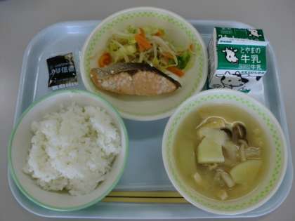 ・牛乳 ・ごはん ・さけの塩焼き ・三色和え