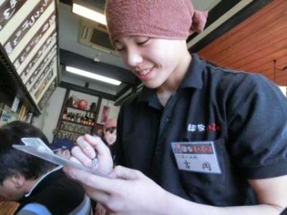一生懸命に働いていました。ユニフォームが似合っています。