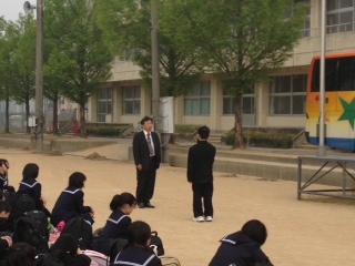 生徒代表が宿泊学習に対する決意を述べ、いよいよ出発です!
