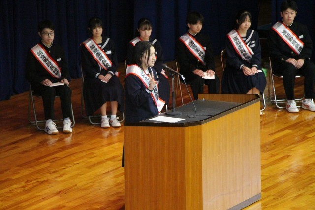 来年度の前期生徒会役員選挙に向けた演説会・役員選挙が行われました。生徒会長と各委員長の選挙が行われますが、1,2年生から合計18名の生徒が立候補し、それぞれの公約、思いを全校に堂々と伝えました。