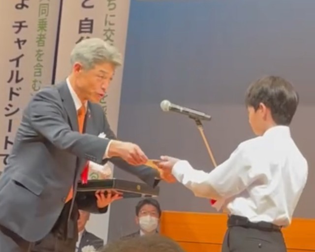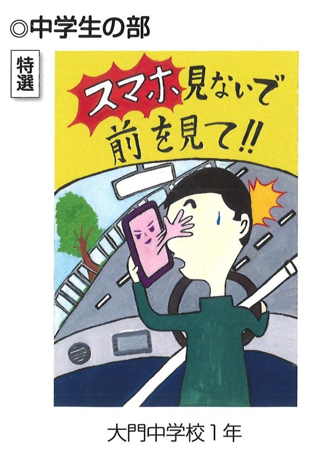 本校1年生生徒が交通安全ポスター中学生の部で特選に選ばれ、