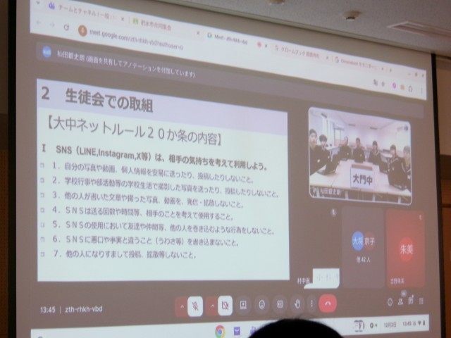 本日、射水市内6中学校生徒会合同集会がオンラインで開催されました。