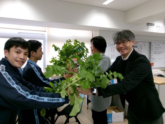 園芸部の畑の大根が大きく育ち、収穫しました。