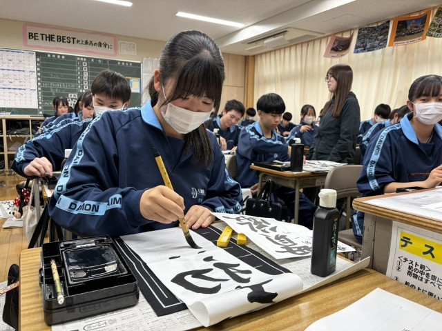 全校生徒一人一人が集中して取り組み、美しい書初を完成させていました。