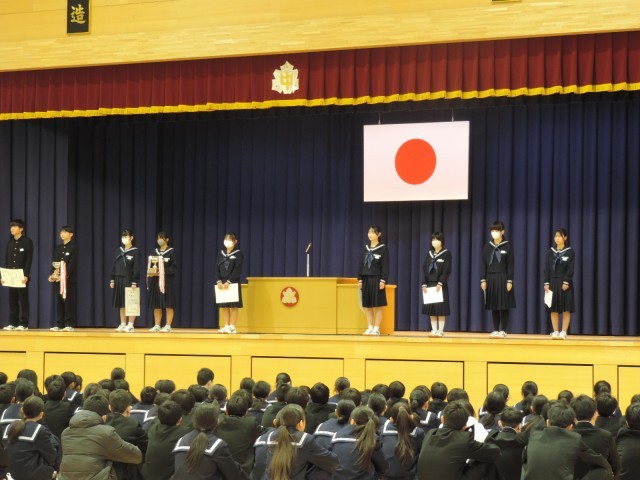 生徒たちは、新年の決意を胸に、真剣なまなざしで式に臨んでいました。