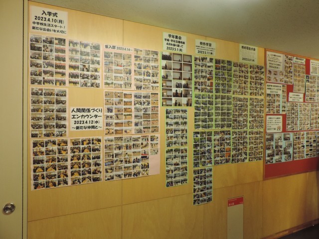 3年棟の掲示は、3年間の歩みが振り返ることができるように入学式からの写真が掲示してあります。