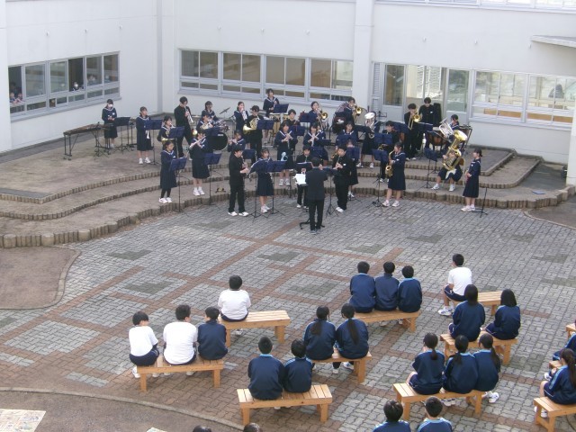 4月24日に吹奏楽部が1年生を対象に中庭でウェルカムコンサートを開催しました。