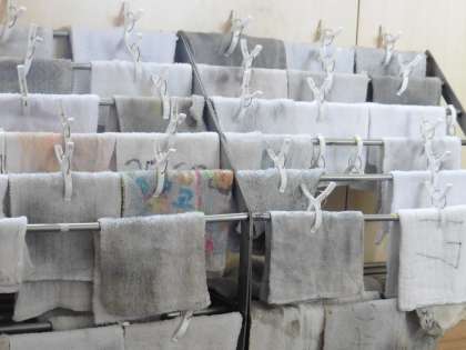 左の写真は、ロッカーの様子です。右の写真は、ぞうきんがけの様子です。