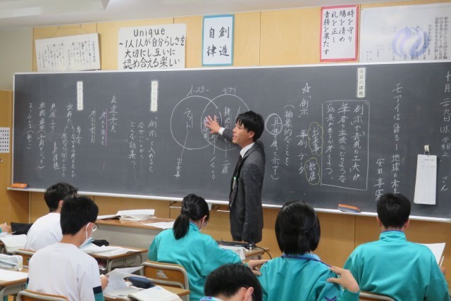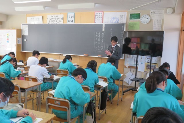 10月29日に国語科の市マイスター教諭の授業公開を行いました。筆者の主張を伝えるための「例示」や「表現の工夫」について、2つの文章を読み比べて考えました。