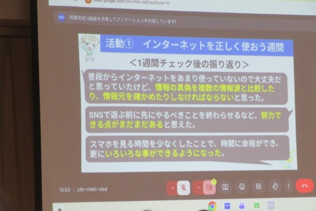 小杉南中学校の取り組みでは、「インターネットを正しく使おう週間」「SNSに関するポスター募集」といった2つの取り組みを紹介しました。