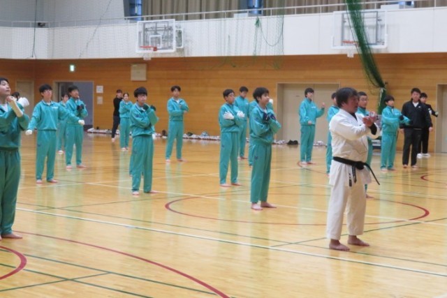 空手の一連の動きの復習からの授業でした。