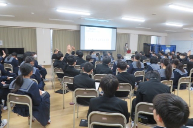 12月16日に1年生は富山大学の小澤郁美先生から「心理学を活かして効果的に学ぼう!」と題して学びの講演会がありました。