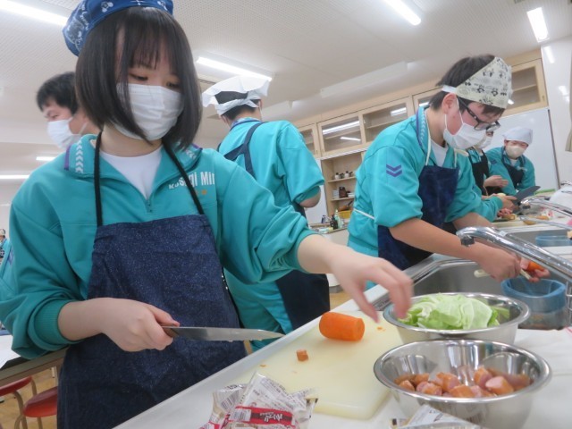 12月17日に3年生は家庭科の授業で調理実習を行いました。