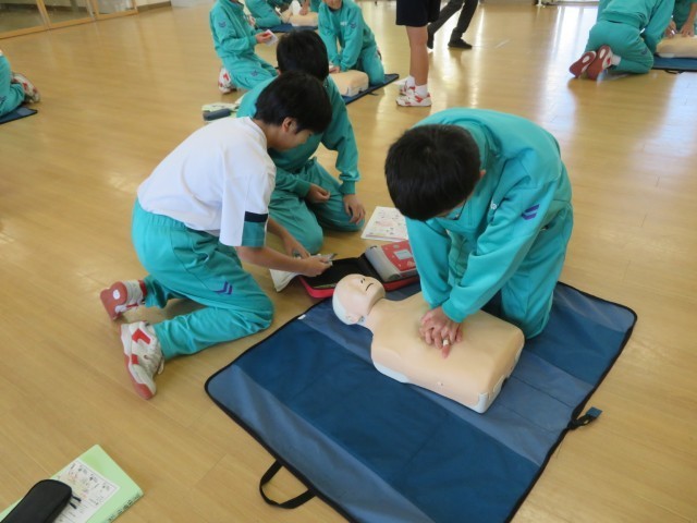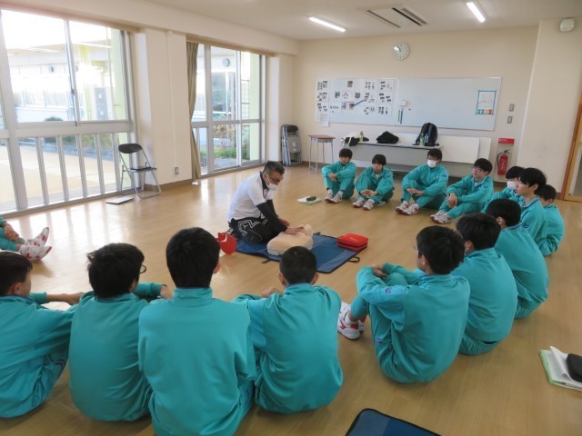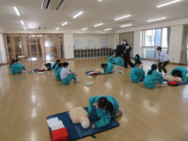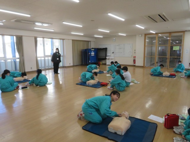 12月19日に2年生は日本赤十字社の方から心肺蘇生法を習いました。
