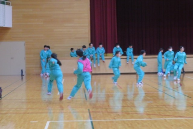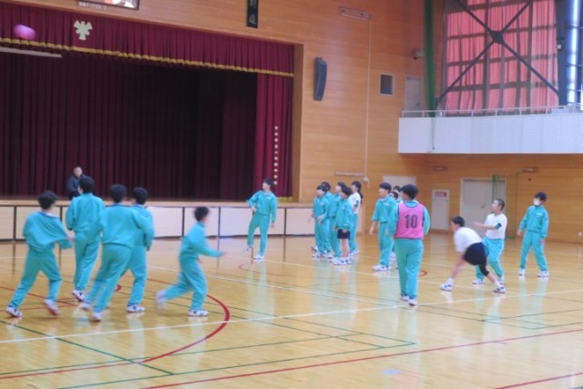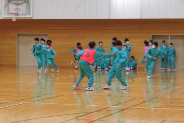 最初はおにごっこで体を温め、それから学級対抗で試合を行いました。