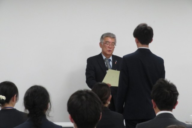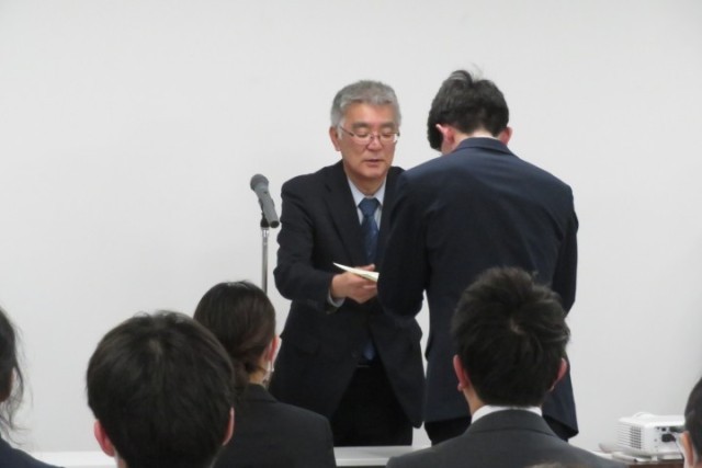 2月20日に救急薬品市民交流プラザで射水市教育研究論文・教育実践記録の表彰式が行われました。