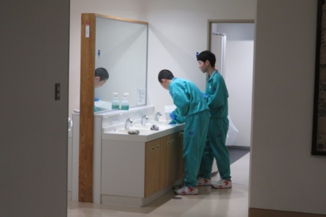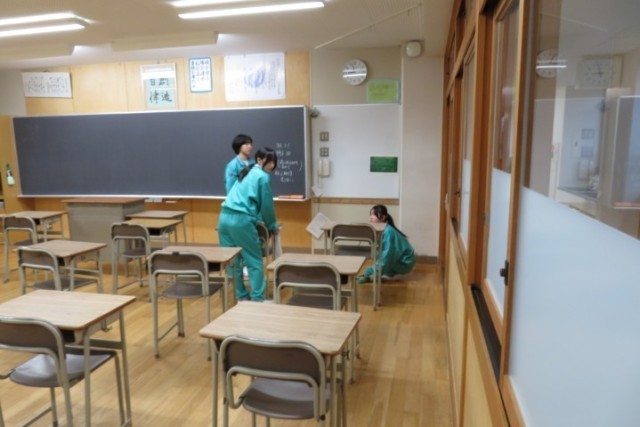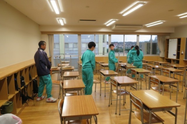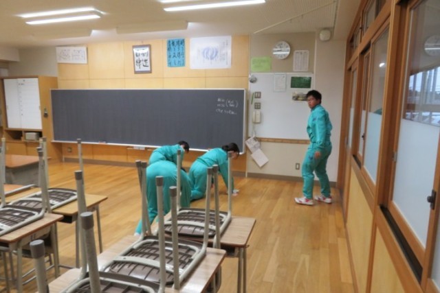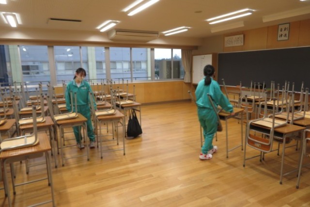 4月7日に3年生が登校し、新年度に向けて校舎内の清掃や各学級の机、椅子の整備等を行いました。
