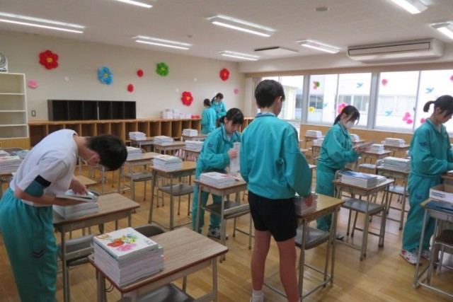 教科書を並べたり、会場準備をしたりしました。