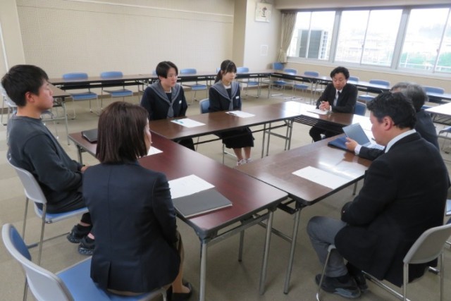 パネラーとして生徒代表2名(生徒会長、生徒会副会長)、PTA代表1名、同窓会長