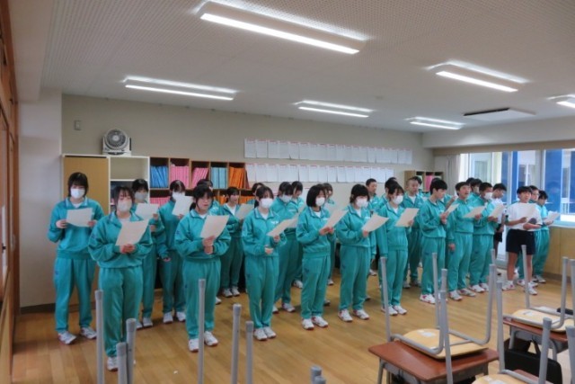 広島平和記念公園のセレモニーの中で歌う曲の練習を行いました。