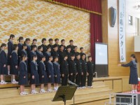 10月26日に合唱コンクールを行いました。1年生の課題曲は「校歌」と自由曲を歌いました。これまでに練習を重ねてきた成果を緊張しながらも一生懸命に歌い上げていました。
