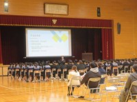 11月26日に3年生は高校説明会を行いました。進学実績のある高校から校長先生等が来校し、分かりやすく各校の特色を紹介していただきました。また、今後の入試の手続きの日程や留意点等を担当から話しました。