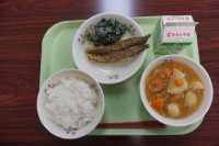 【今日の献立】栗ごはん 鯖の塩焼き ひじきの炒め煮 団子汁 お月見ゼリー 牛乳今...