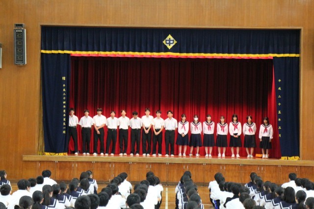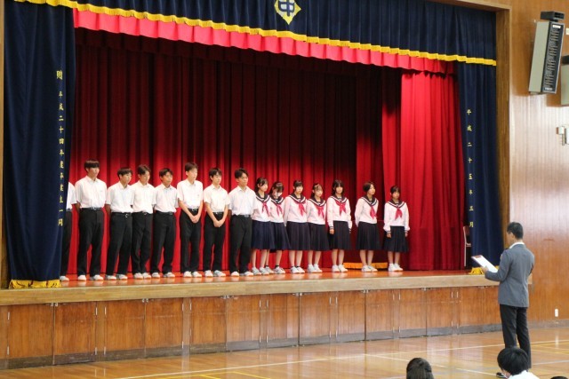 県中学校駅伝大会の壮行会を行いました。監督の先生からの選手紹介、校長先生からの激励の言葉のあと、駅伝部キャプテンからは「男子は5位以内、女子は10以内を目指します」と力強い決意表明がありました。明日はこれまでの練習の成果を発揮するときです。選手たちの健闘を祈ります。頑張れ、戸出中学校!