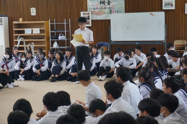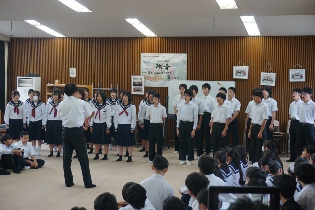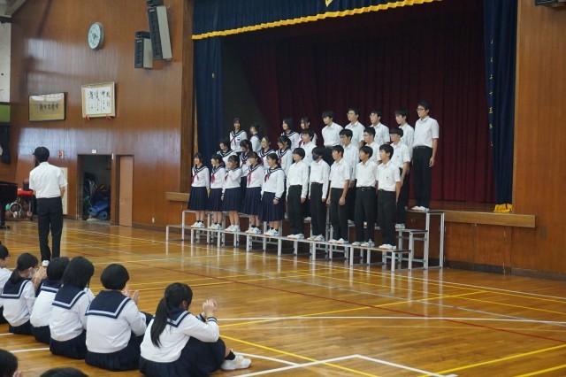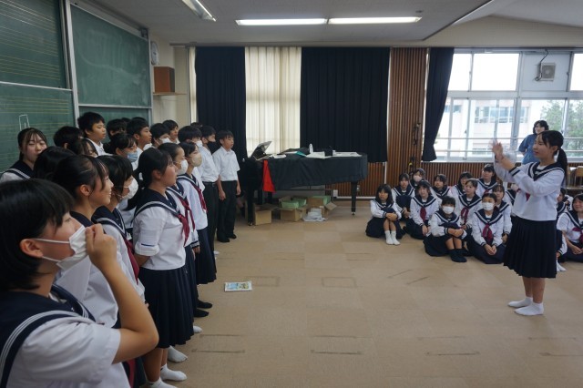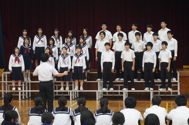 放課後の時間を利用して、合同合唱練習が行われました。1年から3年までのクラスが合同で合唱を発表し合って、感想やアドバイス交換をしました。他学年からの意見を参考にしながら、今後の練習の質を高めてほしいと思います。