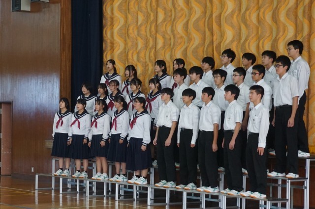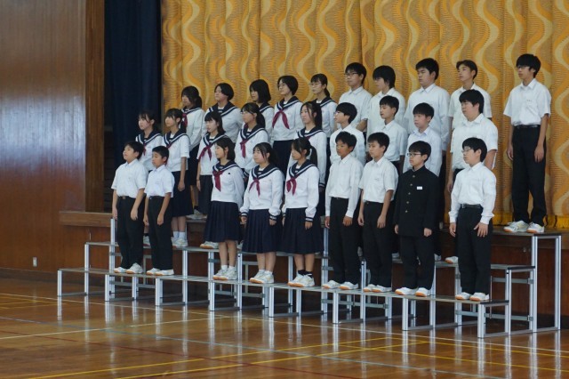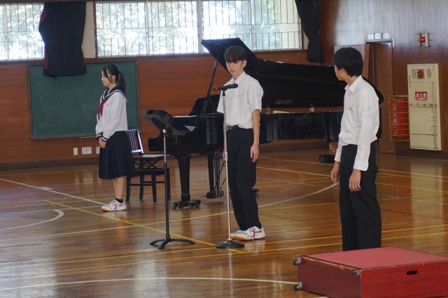 合唱コンクールのリハーサルが各学年で行われ、出入りや代表者コメント発表等も含めた練習が行われました。いよいよ合唱コンクール本番が土曜日に迫り、どのクラスも真剣に歌っている姿が印象的でした。残り2日間でクラスの団結と曲の完成度をさらにあげてほしいと思います。