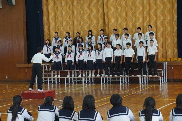 また、3年生のリハーサルでは2校の小学生を招待し、曲の披露と互いの交流を行いました。