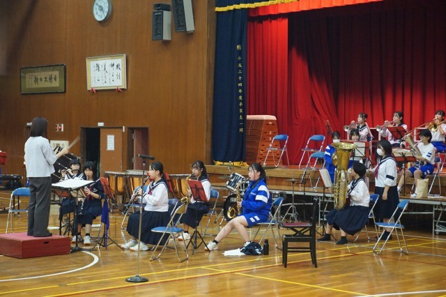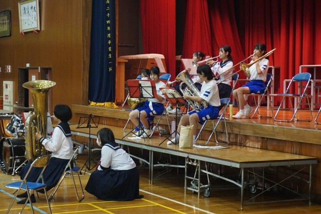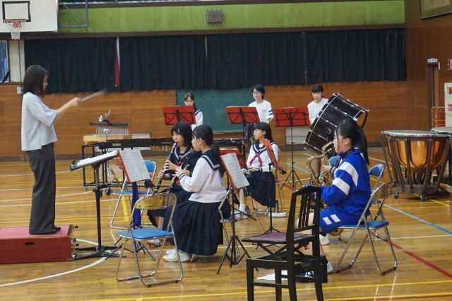 学校祭本番に向けて、放課後の時間には体育館でステージ発表練習を行っています。今日は、2年生による「14歳の挑戦」の発表と吹奏楽部の練習が行われていました。完成度が高まってきており、本番が楽しみです。
