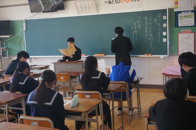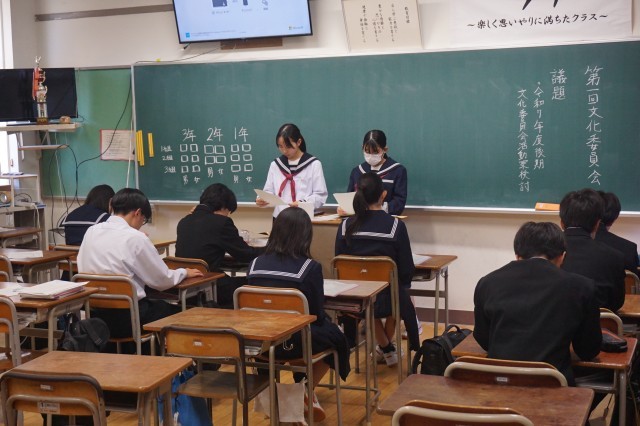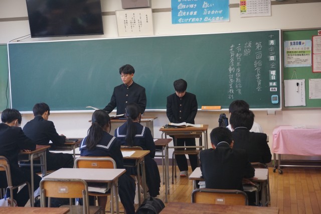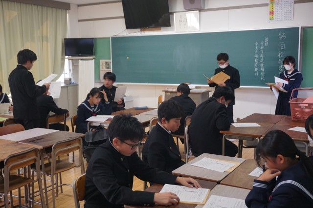 放課後の時間に、生徒会一斉委員会が開かれました。各委員会ごとに、委員長が活動方針案を委員に説明し、さらによりよい活動になるよう意見を出し合いました。2年生が中心となる後期生徒会が活発な活動となり、よりよい学校となることを期待しています。