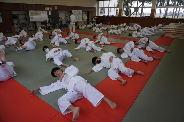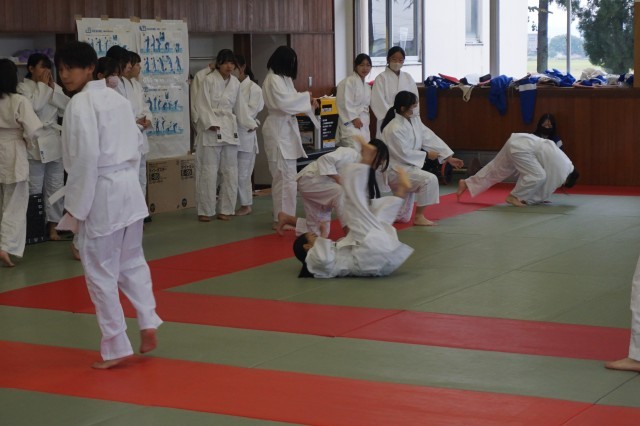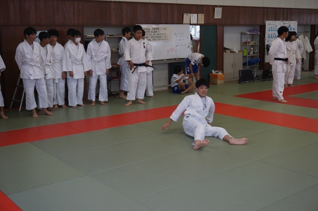 2年生の体育では、柔道の授業を行っています。今日は、後ろ受け身や横受け身、前回り受け身等の技能の練習を前半にたっぷりと行いました。生徒たちは、何度も練習を重ねながら技能の上達を目指していました。