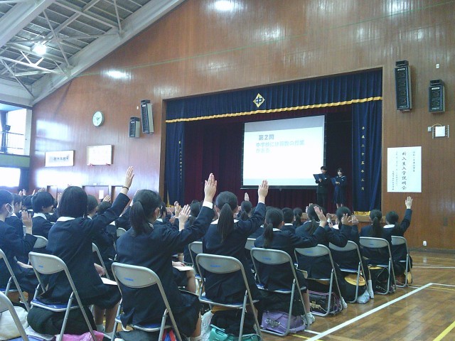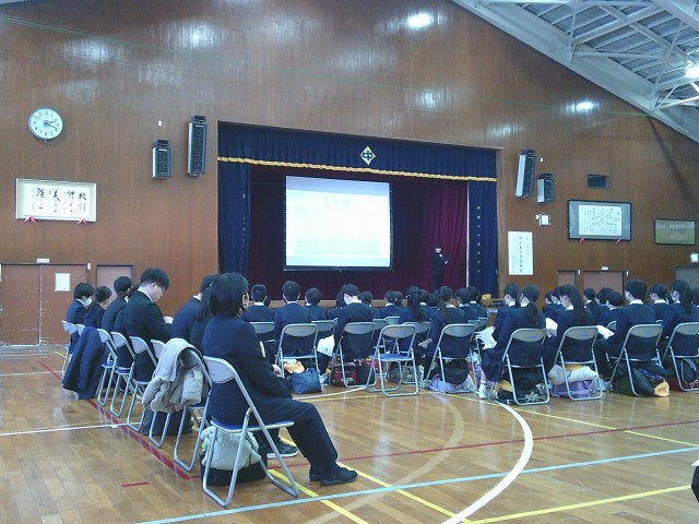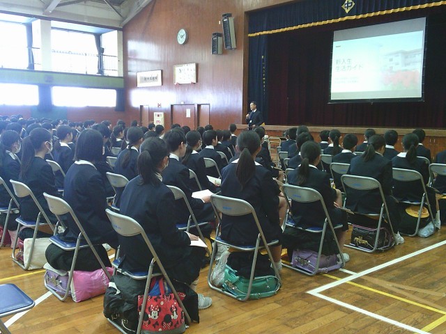 本日、新入生入学説明会を開催しました。1年生代表生徒が小学6年生に中学校生活について説明をしたり、小学6年生が1年生の授業を参観したりしました。