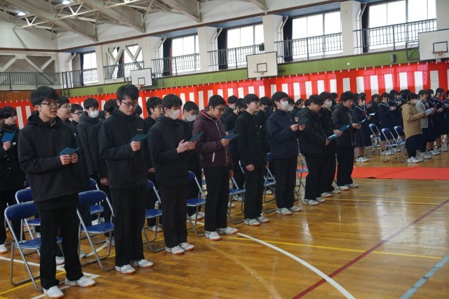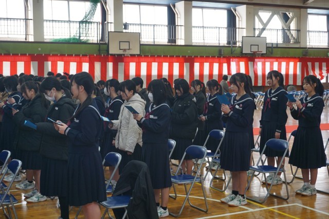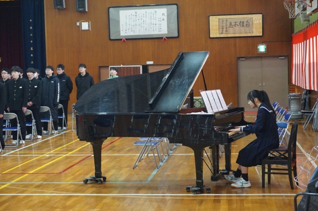 3年生では卒業式や謝恩式で歌う合唱の練習が行われていました。最初は少し、声が出づらそうでしたが練習を重ねるにつれて声も大きくなり、いい曲に仕上がってきました。