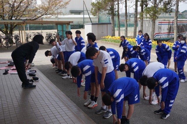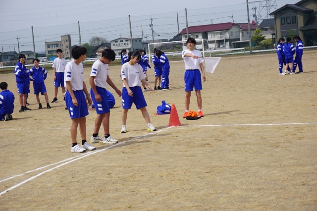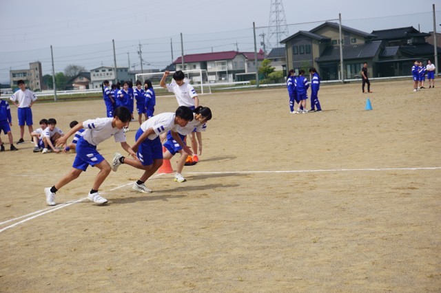 3年生の体育では、100m走が行われていました。穏やかな天候の下、生徒たちはクラスメートと競い合いながら元気にグラウンドを走っていました。